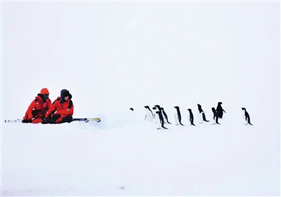 此时海南夏日炎炎,南极正值隆冬。恩克斯堡岛气温大约零下20摄氏度,已知最大风速超过每秒43米,相当于14级台风。