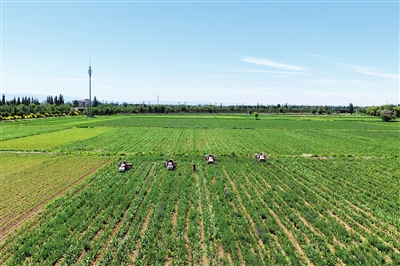6月9日,小店区北格镇同过村,大型机械在田间进行夏季管护工作,为作物高产稳产夯实基础。王韵菲 摄