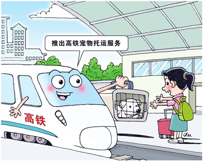 4月8日,京沪高铁5座车站间的10趟列车试点宠物托运服务。根据规定,托运宠物仅限健康状况良好的猫、狗,体重不超过15公斤、肩高不超过40厘米,全程在运输箱内,放置于相对隔离旅客乘车空间的高铁快运柜中。
