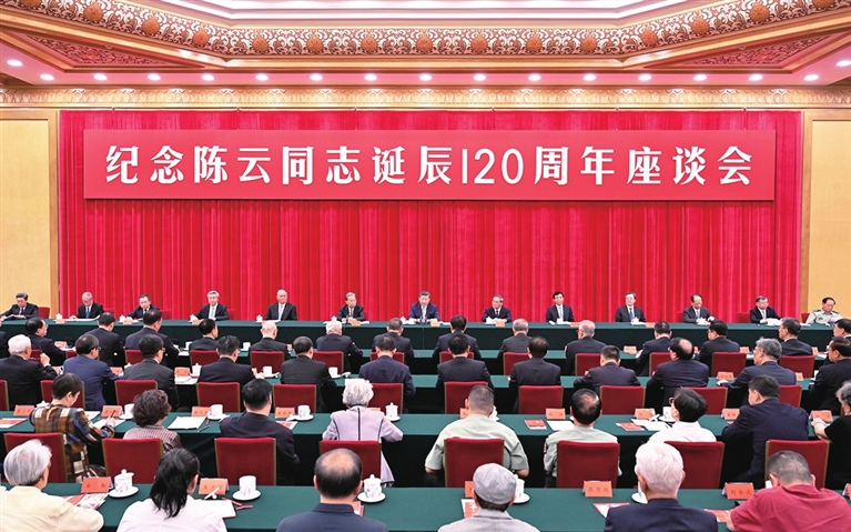 习近平强调,陈云同志无论负责什么领域、在哪个领导岗位,都勤于学习、深入钻研,探索规律、抓住要害,展现出卓越的领导才能,创造了许多至今仍有重要意义的领导经验。我们要学习陈云同志的丰富领导经验,着力提高党领导经济社会发展能力和自身建设水平。加强党对经济工作的领导,深化对社会主义经济建设规律的认识,完整准确全面贯彻新发展理念,加快构建新发展格局,扎实推动高质量发展。蹄疾步稳推动进一步全面深化改革,坚定不移扩大高水平对外开放,为中国式现代化注入更多动力和活力。深入推进全面从严治党,不断增强党的自我净化、自我完善、自我革新、自我提高能力,确保党始终成为中国特色社会主义事业的坚强领导核心。