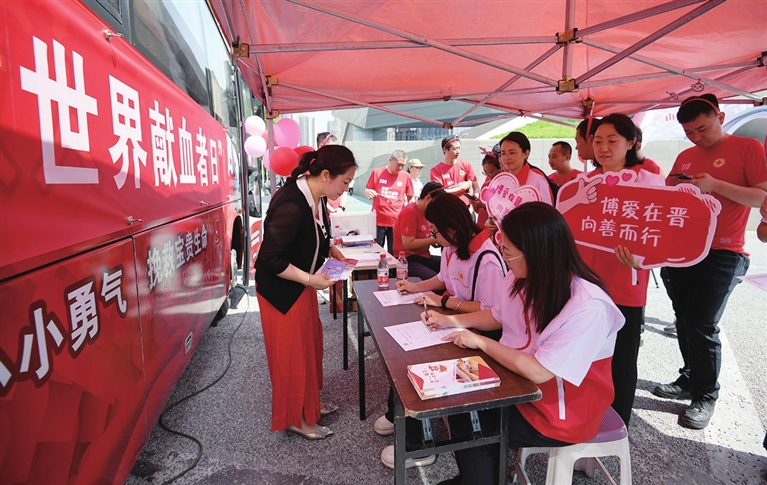 6月13日,由山西省卫生健康委员会、太原市人民政府等单位主办的“热血三晋”世界献血者日主题宣传活动在滨河体育中心拉开序幕。6月14日是第22个世界献血者日,今年的活动口号是“献血传递希望,携手挽救生命”。牛利敏 摄