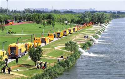 6月15日,由太原市城乡管理局主办的使命2025·城市排水防涝应急演习在汾河景区迎宾桥下举行。此次演习以极端强降雨引发局部城市内涝为模拟场景,围绕应急抽排和救援两大核心任务,多部门协同联动,展开6项专业抢险科目演练。牛利敏 摄