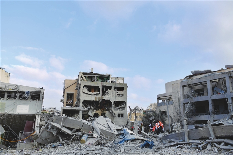 6月16日,在以色列布内布拉克,应急和救援人员在一处导弹袭击现场开展工作。