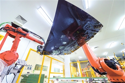 在福耀集团的汽车玻璃绿色智慧工厂中,由大数据赋能的生产线上,人工智能机械手组群正灵动准确地互相配合,高效生产着时尚智能化的汽车玻璃产品。