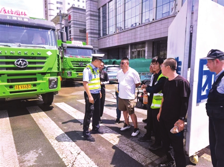 期间,民警向施工单位负责人以及驾驶员进行安全知识讲解,深入解读了最新的安全生产法规政策,发放了“安全生产月”宣传资料,让职工们深刻认识到安全生产的重要性。