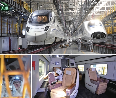 6月26日,太原车辆段太原动车所工作人员对首组经过提质改造的CRH5型车进行调试维护。该列车增加了复兴号标准型蛋壳式商务座椅,可满足旅客的不同需求。牛利敏 摄