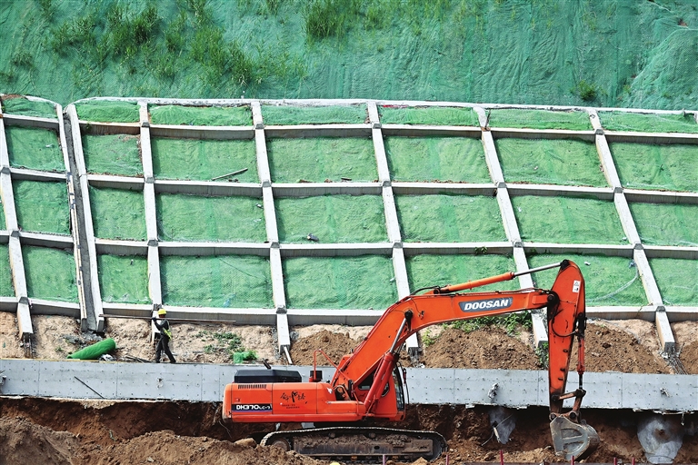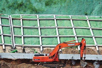 6月29日,万柏林区新建白家庄回迁安置房城中村改造工程项目边坡治理工程正在紧张施工。完工后,将有效消除边坡临近住宅的安全隐患。郭苑甫 摄