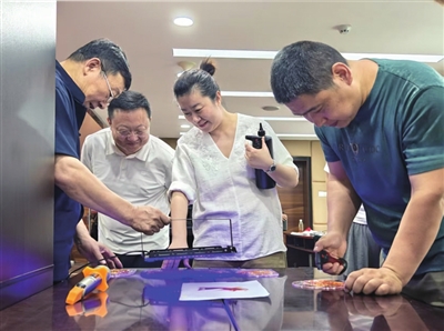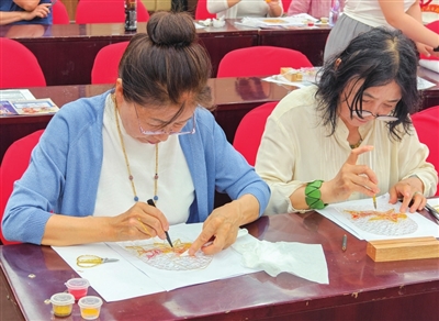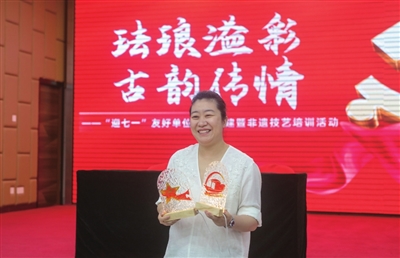 活动特邀太原市工艺美术大师、市级非遗金丝珐琅画技艺代表性传承人庄秋燕,指导众人制作以“红船”“闪闪红星”为主题的红色作品。在庄秋燕讲解非遗技艺历史与工艺后,大家完成选图、掐丝等多道工序。此次活动将红色教育与非遗融合,既让参与者感受非遗魅力,也推动红色基因传承,激发中华优秀传统文化在基层党建中的新活力。