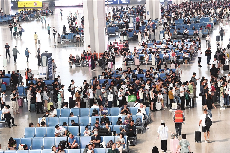 7月1日,2025年暑运大幕开启,客流以旅游流、探亲流、学生流为主。国铁太原局计划增开旅客列车67列,最大限度地满足旅客出行需求。图为太原南站乘车大厅内,旅客有序乘车。牛利敏 摄