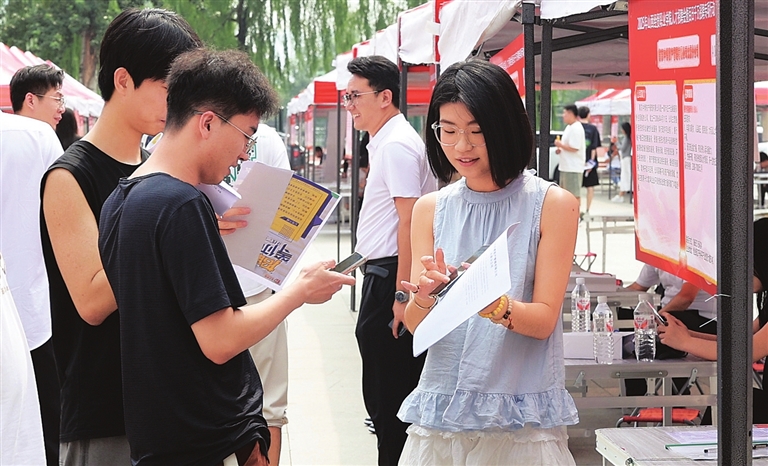 6月30日,山西经贸职业学院举办的2025年毕业生校园招聘会在滨河校区举行,120家企业提供就业岗位1000余个。米国伟 摄