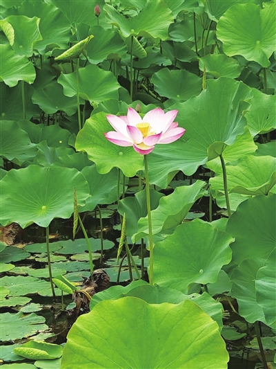看看表,离考试结束还有30分钟。我起身往回走,经过一片睡莲,圆圆的叶子贴在水面,紫红的花朵开得正艳。与荷花相比,睡莲少了几分挺拔,却多了几分慵懒。生命本就有千百种姿态,何必都长成同一个模样?
