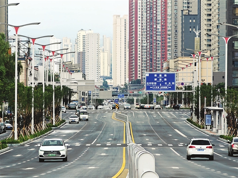 7月3日,我市迎来大范围降雨天气,实施雨污分流工程后的胜利街上,车辆有序通行。郭苑甫 摄