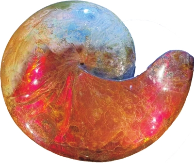 斑彩菊石的“前世”是已灭绝的无脊椎古生物,它们像螺旋形的贝壳,是头足类动物的祖先。它们在6600万年前白垩纪的生物大灭绝事件中,与恐龙一同消失在地球上,但它们的化石却以另一种形式重生。