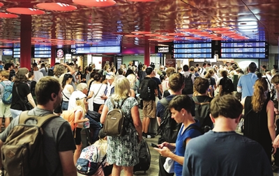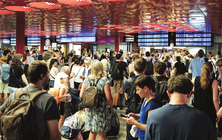 7月4日,旅客等候在捷克首都布拉格的中央火车站。捷克多地4日发生大规模停电,铁路、地铁等公共交通服务受到严重影响。目前,受影响的用户均已恢复供电。新华社发