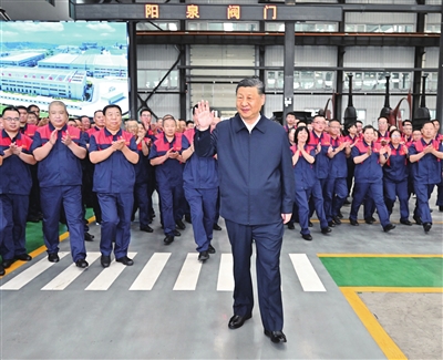 7月7日至8日,中共中央总书记、国家主席、中央军委主席习近平在山西考察。这是7日下午,习近平在阳泉阀门股份有限公司考察时,同企业员工在一起。新华社记者 燕 雁 摄