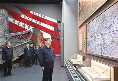 7月7日至8日,中共中央总书记、国家主席、中央军委主席习近平在山西考察。这是7日下午,习近平在位于阳泉市狮脑山的百团大战纪念馆考察。新华社记者 谢环驰 摄