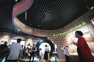 “起来!不愿做奴隶的人们!把我们的血肉筑成我们新的长城……”