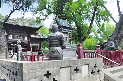 根据上下文,如果“越”解释为“宣扬”,只是在诸侯中宣扬他的美德,“戎狄怀之”则不通。所以,“越”应该解释为“出使”。根据《象形字典》的解字法,从字结构解释“越”字本义,越从“走”从“戉”,戉是代表王权的大斧子。《象形字典》的解释为“离开大斧子”“远离战争”。笔者认为,《象形字典》的拆字方法是正确的,但释义出现偏差,因为“越”字从来没有逃避战争的含义和应用。笔者认为,“越”从“走”从“戉”,是“行走的代表王权的大斧子”“行走的仪仗”。大斧子和仪仗当然不会自己走,是“人手持行走”或“车载行走”。这就是《尔雅》“越,扬也”的真实含义,越,是手持仪仗行走。“对越”连起来,对,取义“偶对”;越,取义“行走的王钺(仪仗)”,即“成对的人高举仪仗、或车载仪仗,行走在帝王前面”。这种仪仗是王权的象征,可以代表帝王出使诸侯、他国,如帝王亲临。“慎勿越”“僭越”,都是说除了这种仪仗队,不允许任何人超越帝王,在前面这个位置上。超越、跨越等义,都源于此。古代文献里,“越”作为车驾仪仗出行的应用有很多。如《左传·昭公二十六年》:“惠、襄辟难,越去王都(惠王、襄王避难,车驾仪仗离开王都)。”“震荡播越,窜在荆蛮(车驾仪仗一路颠沛,奔波在荆蛮之地)。”现在的对越坊前(东)为金人台,后(西)为献殿。从晋祠对越坊视角审视“对越”二字,对比晋祠百年前的老照片和解放后的相关修缮记录可以发现,对越坊原匾正面(朝东)是“万古流芳” ,背面(朝西)才是“对越”。新中国成立后修缮时,把匾翻转,“对越”二字朝向了东面。对应金人台上四个铸铁武士,两两相对,八臂空虚,原来手中都有武器仪仗,正是“对越”二字的直观解释。由此,笔者认为,对越坊并不是高应元见缝插针建在隙地,而是和金人台有直接对应关系,金人台应是圣母祠(惠远祠)门前仪仗护卫。再回到“对越”原始出处《诗经·周颂·清庙》,以“王权仪仗”代入原文,便可看出,这首诗,描述了宗庙里文王的仪像、臣子们和仪仗队伍,反映出古代宗庙初衷:祭祀在天先祖,慎终追远,事死如事生。