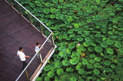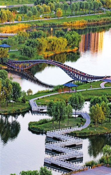 风光旖旎,是河流的容颜。顺流而下,汾河四期如一幅水墨长卷在城北徐徐铺展。雁丘园内,当年元好问笔下“问世间、情是何物”的慨叹,如今沉淀为湿地间婉转的鸟鸣与芦苇迷宫的低语。流水潺潺,栈道曲折,每一处弯折都藏着静谧的惊喜。再往前行,豁然开朗处,“小三亚”的金色沙滩在阳光下闪耀,孩子们追逐嬉戏,帐篷如花朵点缀在碧水金沙之畔,城市人心中向往的“远方”触手可及。