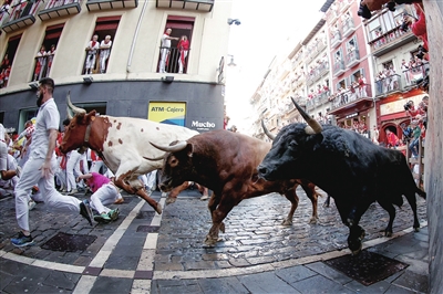7月13日,人们在西班牙潘普洛纳庆祝“圣费尔明”节。每年7月在西班牙潘普洛纳举行的“圣费尔明”节又称奔牛节,是西班牙传统节日之一。新华社/欧新
