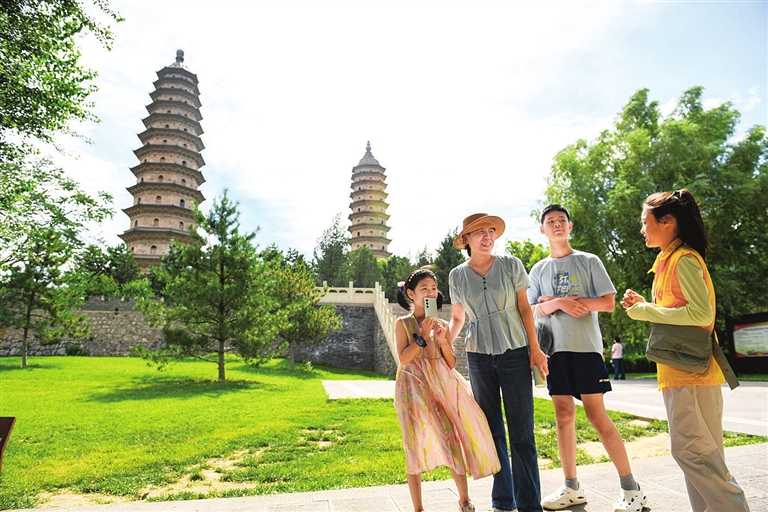 7月16日,双塔博物馆内,小讲解员们正在为游客讲述永祚寺的历史文化。他们思路清晰,语言生动,成为宣传家乡文化、讲述太原故事的“小小代言人”。牛利敏 摄