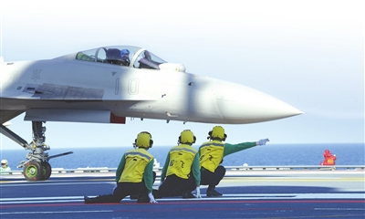 歼-15舰载机首次在国产航母上起飞,曾文辉和战友们一起出色完成了任务。