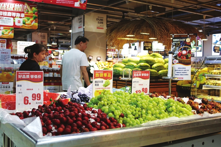 近期,物美价廉的应季水果不断上市。图为7月20日,迎泽区某商超推出水果促销活动。张澍宏 摄