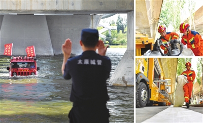 7月22日,市市政建管中心应急保障站内,队员们正在进行防汛应急演练,提高应急快速反应能力。牛利敏 摄
