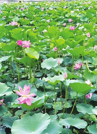 每天观荷,荷花开得愈发繁盛,一朵、三朵……渐渐地,多得让人眼花缭乱。人们沉浸在观荷的喜悦中,流连忘返。有人拿着手机拍照,有人用相机记录,还有一群摄影爱好者,总是不约而同地早早来到池塘边,架好设备,寻找最佳角度,为盛开的荷花留下最美的瞬间。