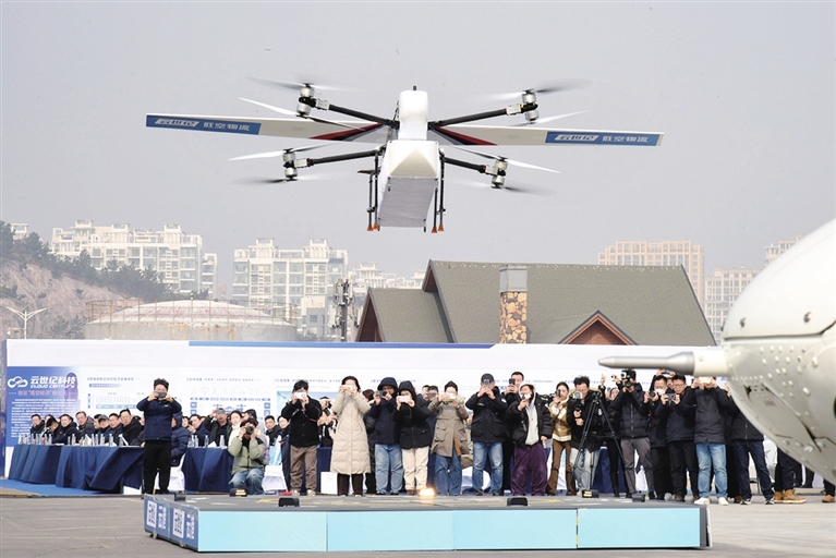 今年2月底,青岛首条海岛低空物流航线开通,10分钟内便可实现积米崖码头与灵山岛之间的陆岛物资双向运输,还可避免以往依靠船舶运输时,遇雾大、浪高等情况停航的问题。