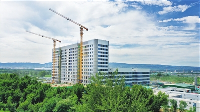 7月26日,阳曲县人民医院新院区建设项目施工现场,医技楼、门诊楼和住院楼已开始装饰装修。项目建成后,将优化医疗资源配置,为阳曲县及周边群众提供优质、便捷的医疗服务。郭苑甫 摄