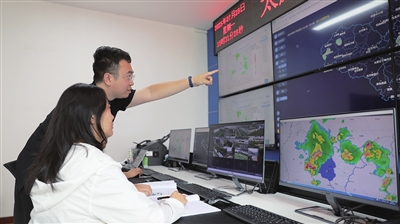 7月28日,太原市防汛抗旱保障中心工作人员监测降雨发展趋势和雨情。当前正值“七下八上”防汛关键期,该中心工作人员坚持24小时值班值守,全力以赴做好防汛应急工作。郭苑甫 摄