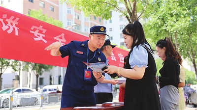 7月30日,迎泽区庙前街道在辖区开展“人人讲安全、个个会应急”主题安全应急宣传,增强辖区企业、居民安全意识和应急处置能力,全力筑牢安全防线。郭苑甫 摄
