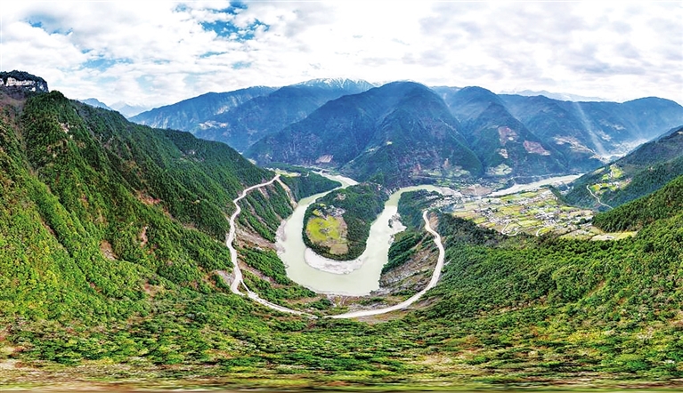 在怒江州贡山县丙中洛镇拍摄的怒江第一弯(无人机全景照片)。新华社发