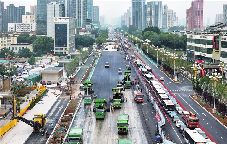 8月5日,迎泽大街维修改造工程进入全面铺油作业阶段。牛利敏 摄