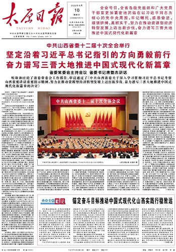 中国共产党山西省第十二届委员会第十次全体会议,于2025年8月8日至9日在太原举行。