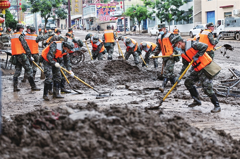 在转移安置的同时,受灾乡镇其他群众和前来援助的干部、救援人员一道,昼夜不停,抓紧恢复生产生活。