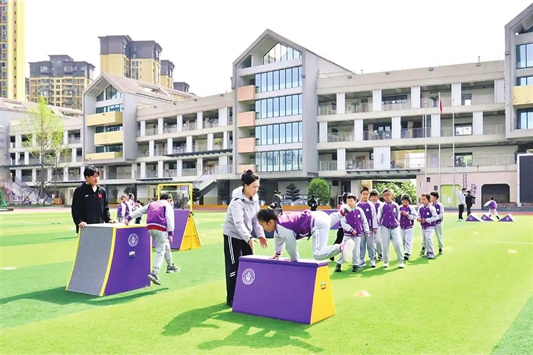 天回小学校长何运强介绍,学校自2023年引入跑酷项目,目前已构建起“普及课+社团+校队”三级培养体系。“我们与专业跑酷培训机构合作,从一年级到六年级,36个班级每周都开设跑酷课,孩子们积极性很高,现在学校跑酷队已经有100多人。”