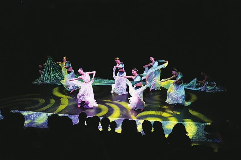 变幻的灯光,简单的塑料薄膜,蓝白相间的长布随舞者挥动如海浪翻涌。在本次爱丁堡边缘艺术节上,上海戏剧学院舞蹈学院带来的舞剧《净境》结合傣族“鱼舞”,以新颖形式表达珍爱海洋环境、人与自然和谐共生的理念。