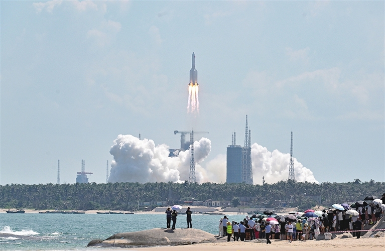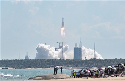 8月13日14时43分,我国在文昌航天发射场使用长征五号乙运载火箭/远征二号上面级,成功将卫星互联网低轨08组卫星发射升空,卫星顺利进入预定轨道,发射任务获得圆满成功。新华社记者 郭 程 摄