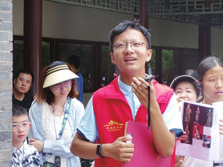 手捧几十页密密麻麻的讲解词,他也抱怨过“太难记”。多年来坚持做志愿者的妈妈给他耐心讲解,用文物背后的典故趣闻,用配图、视频激发他的兴趣,在现场讲解演练中总是当他的第一个听众。还有专业老师的悉心指导、观众的微笑和掌声……这些,都赋予他坚持和成长的力量。