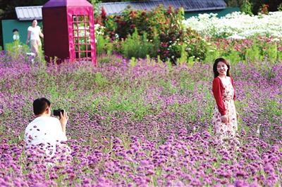8月18日,杏花岭区薰衣草NE庄园内,众多游人徜徉在紫色花海中,感受浪漫。张昊宇 摄