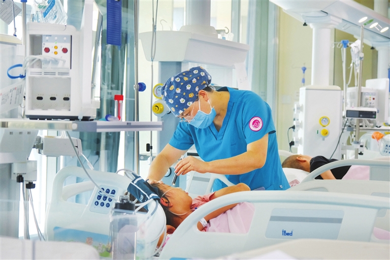 8月19日是第8个中国医师节,我市广大医师坚守岗位,日夜守护人民健康。图为荣获“太原医师奖”的太原市妇幼保健院儿内科医师李小琴在为患儿检查。王韵菲 摄