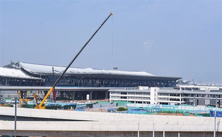 8月20日,太原武宿国际机场三期改扩建工程现场,T3航站楼雏形显现。该航站楼项目位于T2航站楼东侧,主要包括中心区、东指廊、中指廊、西指廊4个部分。目前,幕墙安装、金属屋面等装饰装修工作正有序推进。牛利敏 摄