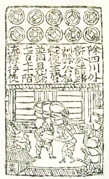 北宋时期发行的交子,被称为世界上最早使用的纸币。最初的交子实际上是一种存款凭证。北宋时期,成都地区出现了为不便携带巨款的商人提供现金保管业务的“交子铺户”。存款人把现金交付给铺户,铺户把存款数额填写在用楮纸制作的纸卷上,再交还存款人,并收取一定保管费。这种临时填写存款金额的楮纸券便谓之交子。