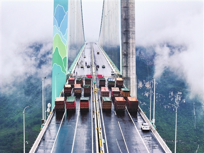 8月21日,在建世界第一高桥——贵州花江峡谷大桥正式启动荷载试验(无人机照片)。新华社记者 杨文斌 摄