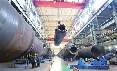8月22日,潞安化机气化装备分公司车间内,工人正在进行“晋华炉”吊装作业。近日,潞安化机成功取得中国特种设备生产许可证压力容器分析设计(SAD)许可资质,标志着潞安化机在高端压力容器设计领域实现突破,跻身国内少数具备该资质的制造企业之一。王韵菲 摄