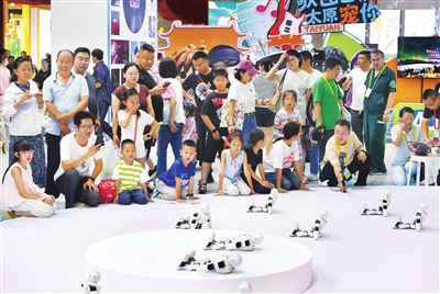 面对有些腼腆紧张的小学生,机器人还会降低语速并鼓励:“小友莫急莫慌,自古多少英雄出少年。”展区负责人、大连蒂艾斯科技发展股份有限公司市场总监郑雅欣介绍,人形仿生机器人有100多个自由度,应用场景一般为博物馆、酒店前台、营业厅的促销员、讲解员之类。“千山鸟飞绝,万径人踪灭。”“明月松间照,清泉石上流。”……大家纷纷体验,在古今对话中,完成历史、文化与科技的“击掌”。