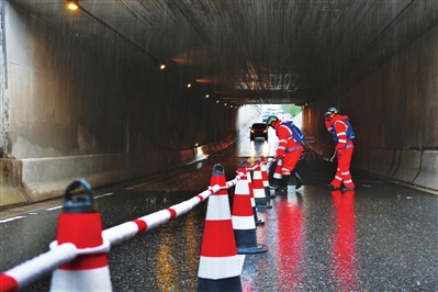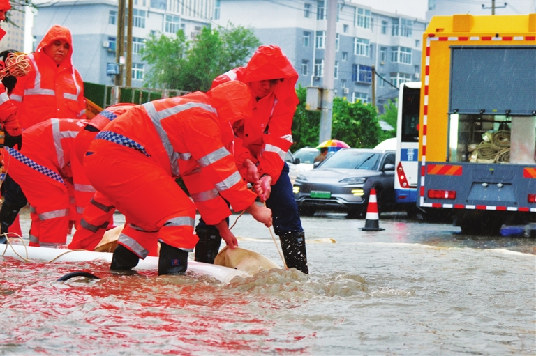 8月23日,我市迎来强降雨,市政建管中心各基层单位快速启动防汛应急预案。王韵菲 摄