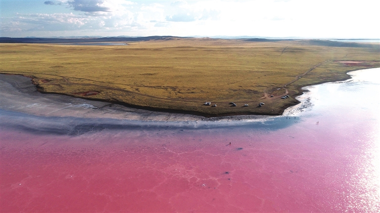 这是8月23日在哈萨克斯坦阿克莫拉州拍摄的科贝图兹湖(无人机照片)。位于哈萨克斯坦阿克莫拉州的科贝图兹湖,因湖水中的一种微藻在高温干燥的夏季会产生β-胡萝卜素而使湖水呈现出从淡粉色到深玫红色的色彩变化,而得名“粉湖”,是该国著名的网红打卡景点。因旅游承载能力有限和环境问题,科贝图兹湖从2020年起实行封闭管理,并进行生态修复。今年夏季湖区重新对公众开放。新华社发